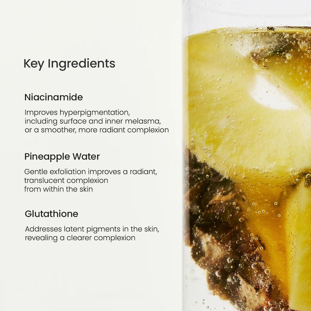 Infused with pineapple water, rich in natural enzymes, it gently lifts away dead skin cells to unveil a smoother, more radiant complexion without irritation.